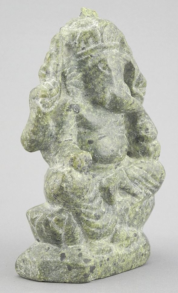 Old South Asian Green Stone Carving of Ganesh, 5 1/4"h, 570g.
