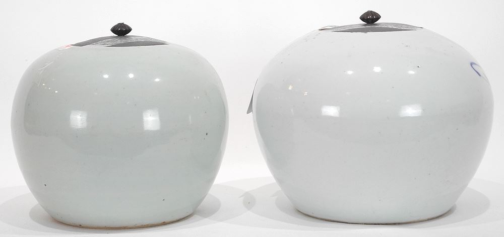 Two Chinese Underglaze Blue Jars, One White/One Celadon, 6 1/4 x 6 1/2 "h.