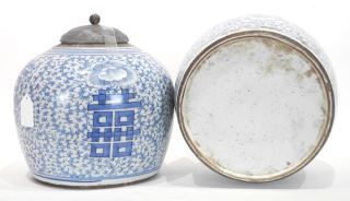 LOT 321 Two Chinese Blue & White Porcelain Jars with Grey Metal Covers (one cracked). Estimate: $60 - $100 Sold For: $80 Auction Date: Tuesday, June 03 2025 at 4:00 PM
