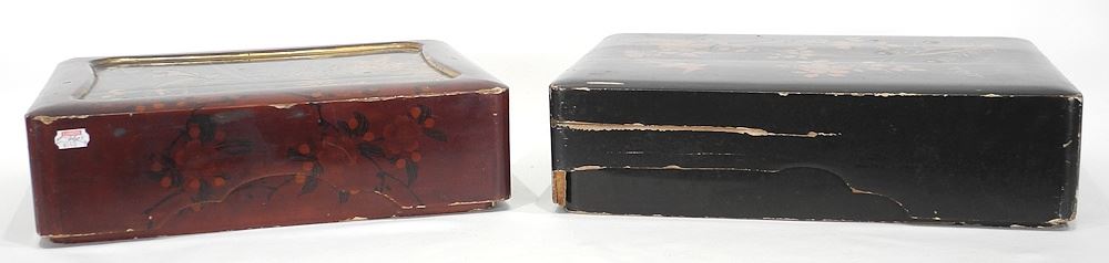 Japanese Lacquer "Koi" Box (3 1/4 x 10 3/4 x 13 1/8") & Another Damaged Box.