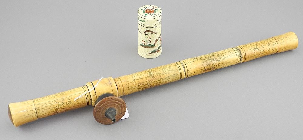 LOT 327 Natural Opium Pipe (15 3/4") with Bone Box, 2 5/8"h. Estimate: $300 - $500 Auction Date: Tuesday, June 03 2025 at 4:00 PM