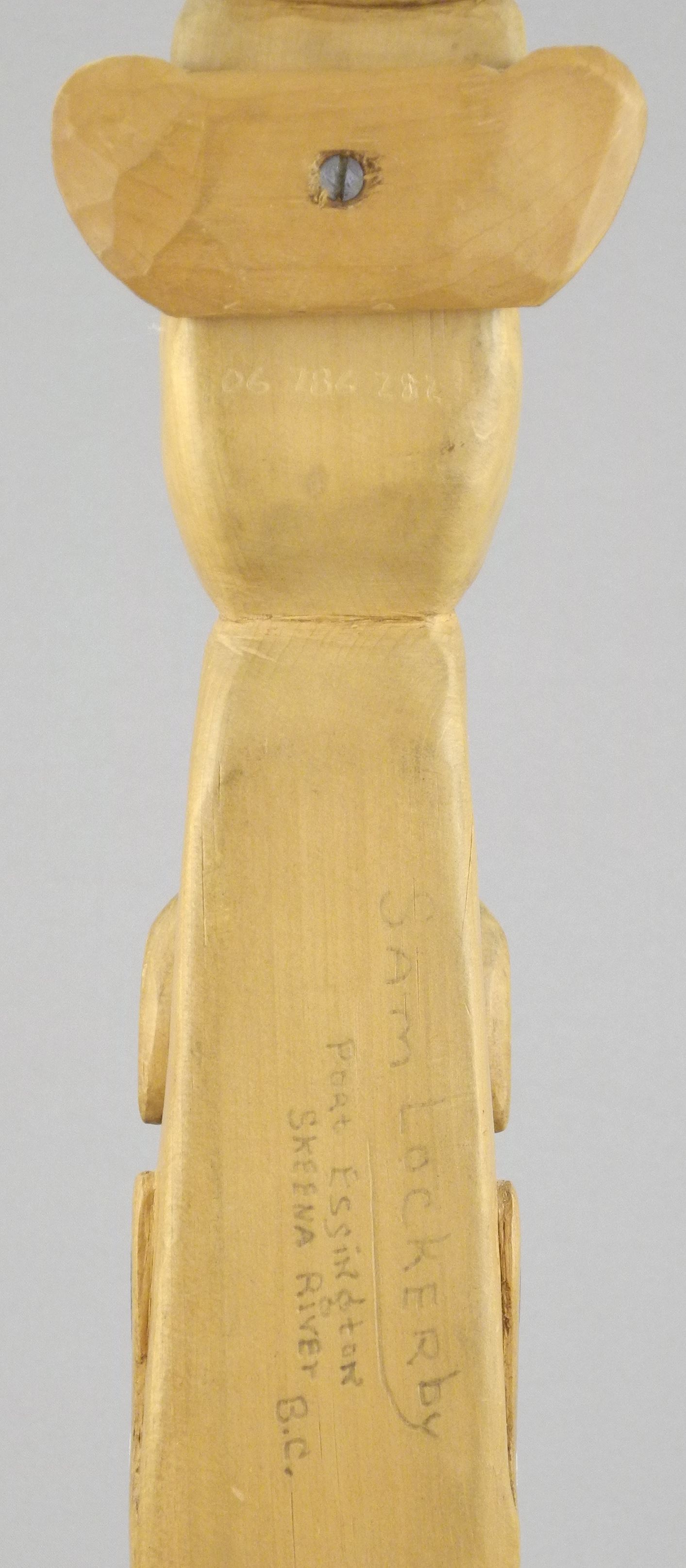 Northwest Coast Model Totem Pole signed Sam Lockerby Port Essington Skeena BC.