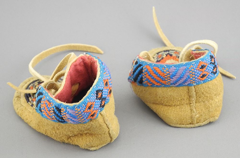 Pair of Beaded & Embroidered Tanned Hide Baby Moccasins, 3 3/4"L.