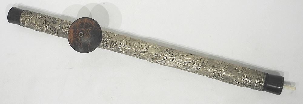 LOT 69 Chinese White Metal Opium Pipe. Estimate: $60 - $100 Sold For: $110 Auction Date: Tuesday, June 03 2025 at 4:00 PM