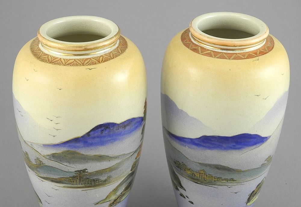 Pair of Japanese Satsuma Pottery Vases, 7"h.