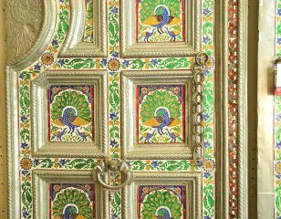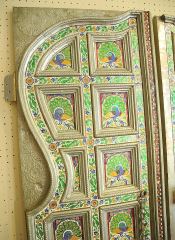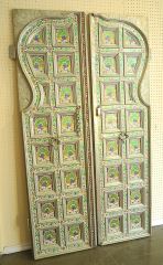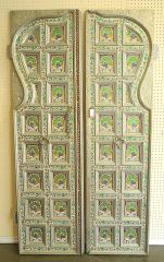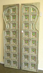 Pair of Persian Enameled Ornamental Doors, 77 3/4 x 20 1/2 x 2 1/2".