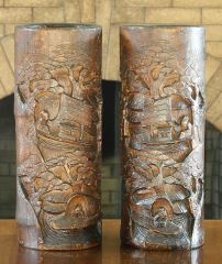 Pair of Chinese Carved Bamboo Vases, 11 7/8".