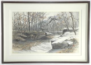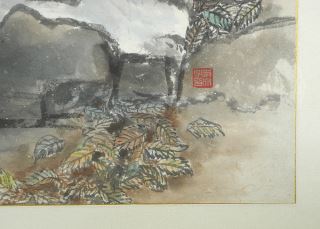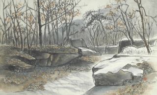 Chinese Ink & Watercolour signed with Chop, 22 x 35 1/2", "Autumnal Scene with Snow".