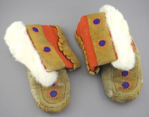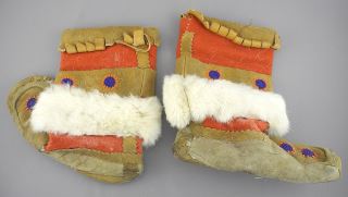 LOT 196 Pair of Beaded Tanned Hide Boots, 9 3/4", NO EXPORT. Estimate: $60 - $100 Auction Date: Tuesday, June 03 2025 at 4:00 PM