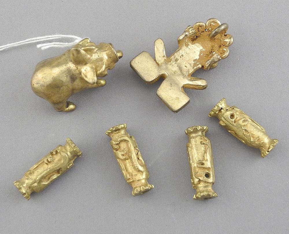 LOT 334 Collection of Pre-Columbian Style Gold Plated Silver Amulets, 48g. Estimate: $80 - $100 Sold For: $45 Auction Date: Tuesday, June 03 2025 at 4:00 PM