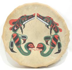 Nuu-Chah-Nulth Snake Drum, 2 1/2 x 17" Diameter (as found/condition noted).