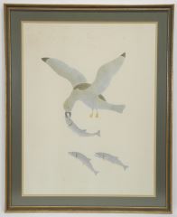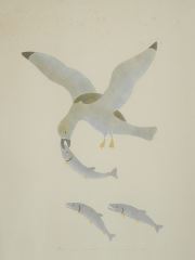 LOT 250 Inuit Print signed with Syllabics by Paulosie Sivuak, 22 x 16 5/8", "Seagull Catching Fish" (f Estimate: $100 - $200 Sold For: $50 Auction Date: Tuesday, June 03 2025 at 4:00 PM