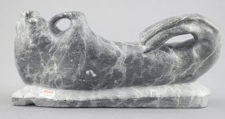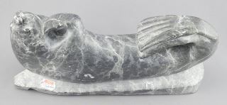 Inuit Sculpture signed with Syllabics & 169-786, 11"w., "Reclining Seal".