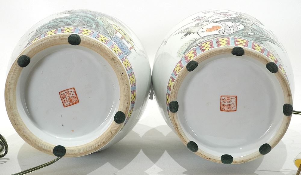 Pair of Chinese Famille Rose Vases Mounted as Lamps, Vases 18 1/4"h.
