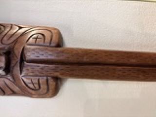 Squamish Carving signed Larry Guerrero, 19 7/8"h, "Long Tooth Beaver".