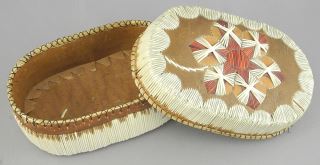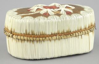 Porcupine Quill Basket, 2 3/4 x 5 5/8 x 3 3/4" (minor losses noted), NO EXPORT.