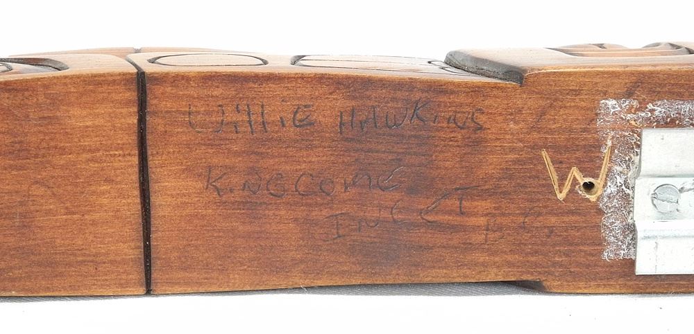 LOT 50 Kwagiulth Talking Stick signed Willie Hawkins Kingcore Inlet, 61"h. Estimate: $200 - $300 Sold For: $425 Auction Date: Tuesday, June 03 2025 at 4:00 PM