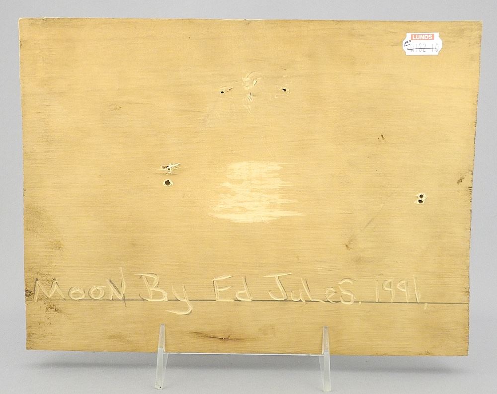 Kyuquot Plaque signed Ed Jules 1991, 7 1/2 x 10", "Moon".
