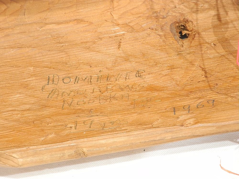 LOT 118 Nuu-Chah-Nulth Cedar Mask signed Dominic Andrews'69, 12"h. Estimate: $150 - $200 Auction Date: Tuesday, June 03 2025 at 4:00 PM