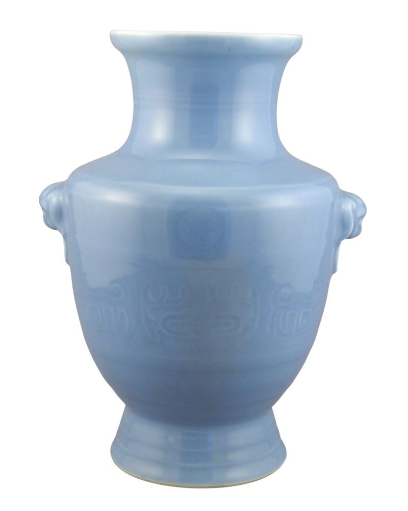 Chinese Porcelain Blue Glazed Vase, Qianlong Mark, 10 3/4"h.
