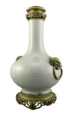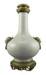 19th C. French Bronze Crackle Glaze Vase Mounted as a Lamp, 15"h.