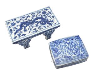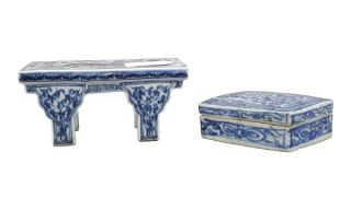 LOT 56 Chinese Blue & White Porcelain Dragon Table Stand, Xuande Mark (2 3/4 x 5 7/8 x 3 1/4")w/ Estimate: $100 - $200 Sold For: $130 Auction Date: Tuesday, November 25 2025 at 4:00 PM