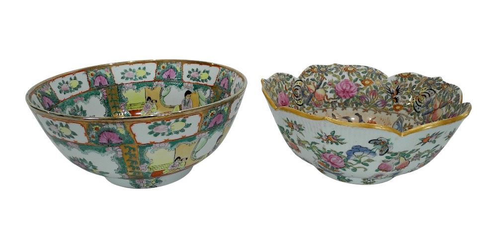 Two Chinese Famille Rose Porcelain Bowls, 10" Diameter.