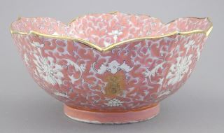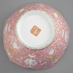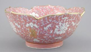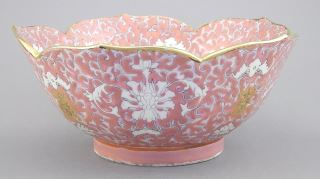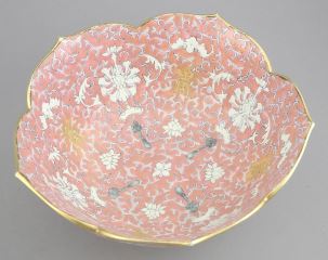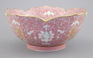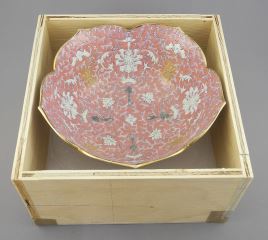 Qing Famille Rose Porcelain Lotus Shaped Bowl with Qianlong Mark, 3 1/2 x 7 7/8" with Box.