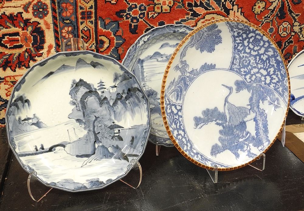 LOT 130 Five Japanese Blue & White Porcelain Bowls, 8 3/8 - 13 3/8" Diameter. Estimate: $100 - $150 Auction Date: Tuesday, November 25 2025 at 4:00 PM