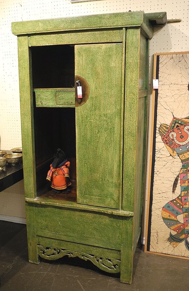 LOT 243 Chinese Green Painted Tall Cupboard, 69"h. Estimate: $100 - $200 Sold For: $110 Auction Date: Tuesday, November 25 2025 at 4:00 PM