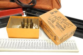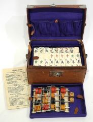 LOT 235 Leather Case Mah Jong Set C.1923 (9 1/4"w) with Counting Set & Racks in Bag. Estimate: $100 - $200 Sold For: $90 Auction Date: Tuesday, November 25 2025 at 4:00 PM