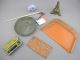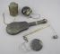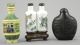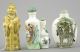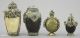 Six Chinese Apple Green Jade Gemstones & Chinese Soapstone Figure