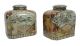 Pair of Early 20th C. Wan Shou Wu Jiang" Porcelain Cover Tea Cups with Case.