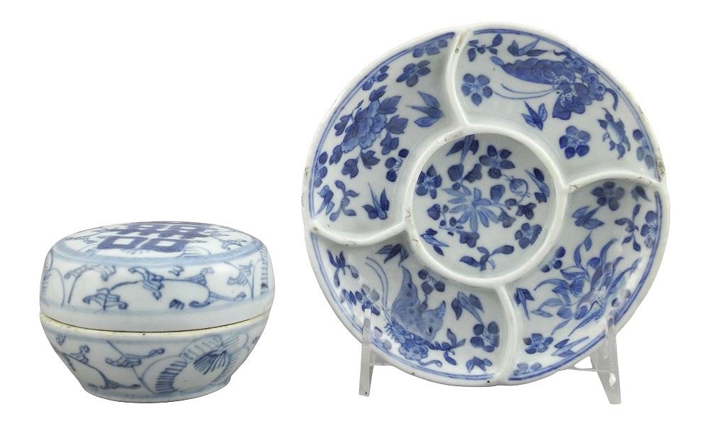 Three Pieces of Chinese Blue & White Porcelain, Plate 8" Diameter.