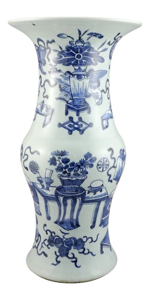 Chinese Blue & White Molded Porcelain Vase with Chenghua Mark, 16"h (cracked & restored).