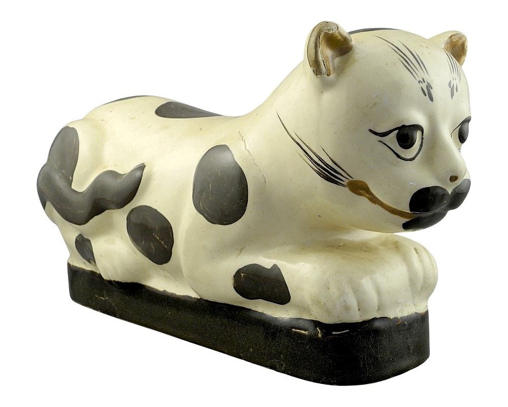 Cizhou Style Cat Shaped Ceramic Pillow, 12 1/2"L.