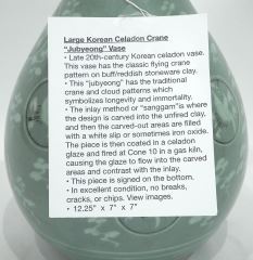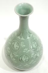 Korean Inlaid Celadon Jubyeong Vase, 12 1/4".
