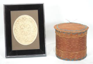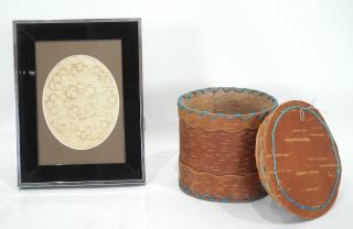 LOT 124 Birch Bark Biting signed Sally Milne 04', (5 x 4") & Basket, 5"h. Estimate: $50 - $60 Sold For: $20 Auction Date: Tuesday, November 25 2025 at 4:00 PM