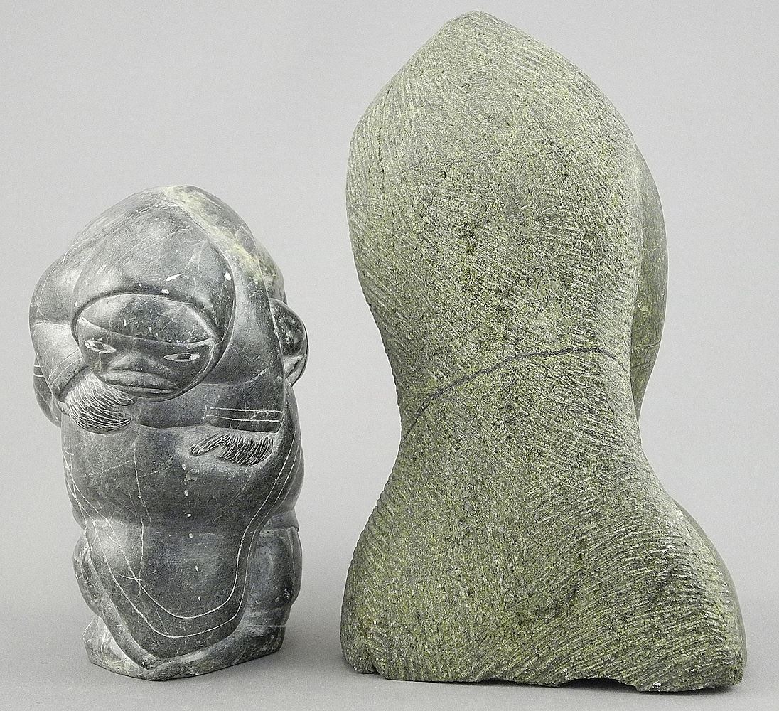 Two Inuit Sculptures: Figures/Annie 67831 (4 7/8") & Unsigned Partial Bust, 6 1/2"h.