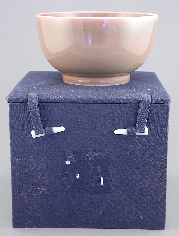 Chinese Peach Bloom Glazed Porcelain Bowl, 3 x 5 1/4" Diameter, with Fitted Case.