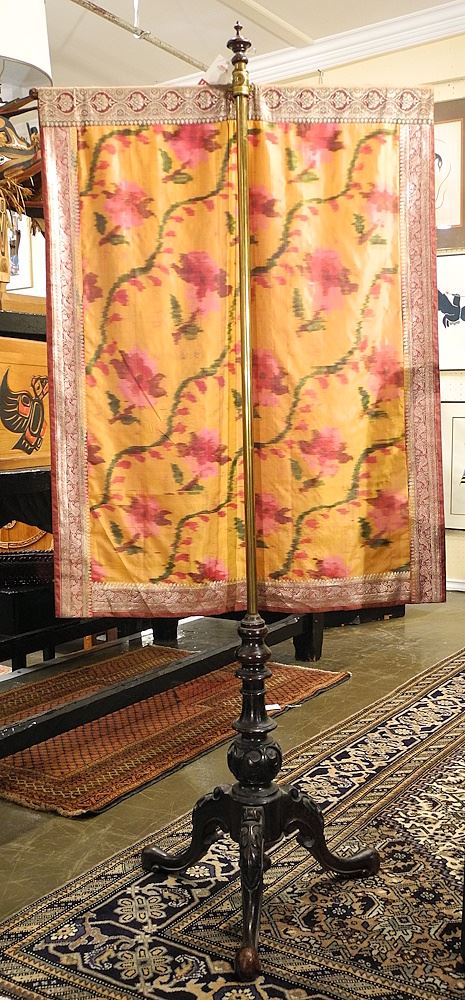 LOT 45 Old Tibetan Thangka (sight 23 x 21") Mounted on Victorian Pole, 60"h. Estimate: $150 - $300 Sold For: $140 Auction Date: Tuesday, November 25 2025 at 4:00 PM