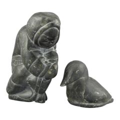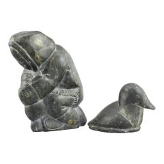 LOT 193 Two Inuit Stone Carvings: Figure signed with Syllabics (6"h) & Duck signed Harry, 4 1/8"L. Estimate: $60 - $100 Sold For: $90 Auction Date: Tuesday, November 25 2025 at 4:00 PM
