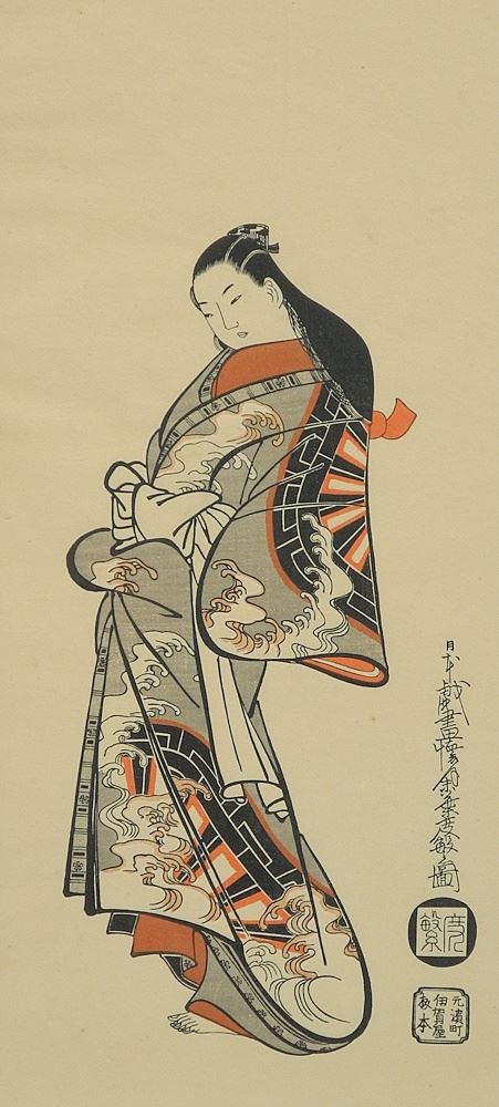 Pair of Japanese Woodblock Prints, 15 1/4 x 6 3/4", "Figure Studies".