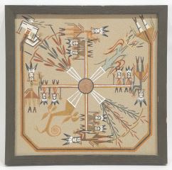 LOT 73 Navajo Sand Painting by Foster, 11 3/4 x 11 3/4", "Nine Days Ceremony...". Estimate: $50 - $60 Sold For: $30 Auction Date: Tuesday, November 25 2025 at 4:00 PM