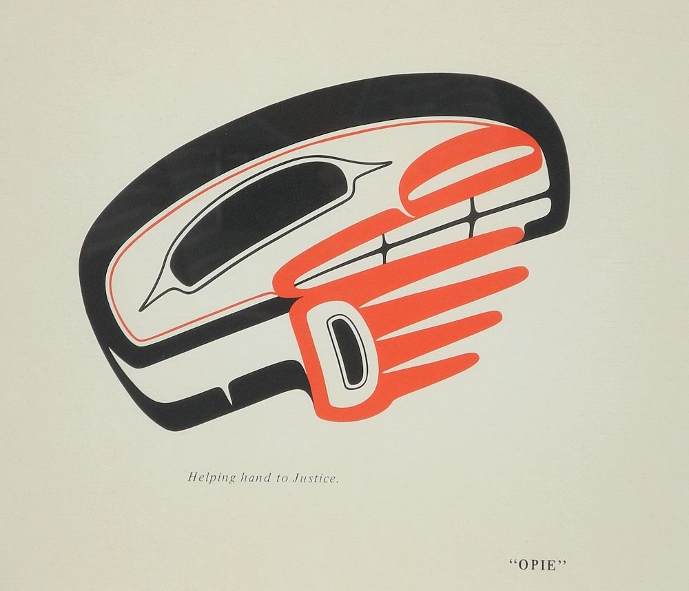 Serigraph signed "Opie" (Phillip Raymond Oppenheim), 11 x 15", "Helping Hand to Justice".