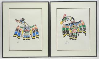 Two Mixed Media on Paper signed Mark Henderson, 18 x 14", "Raven" & "Thunderbird".