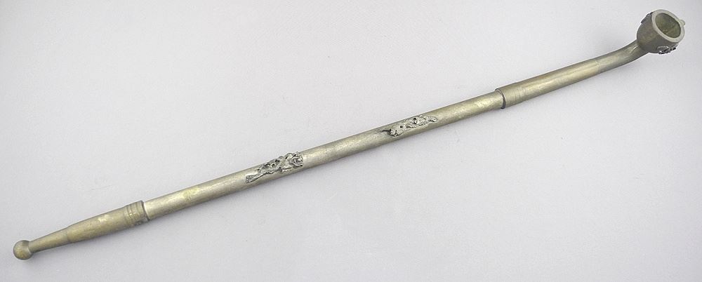 LOT 169 Bronze Extendable Opium Pipe with Carved Designs, 21 3/8" Closed, Acquired in China. Estimate: $100 - $200 Auction Date: Tuesday, November 25 2025 at 4:00 PM
