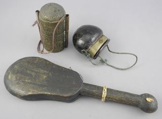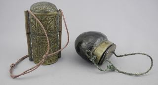 Two Opium Boxes & Opium Scales, 9 1/8"L. -