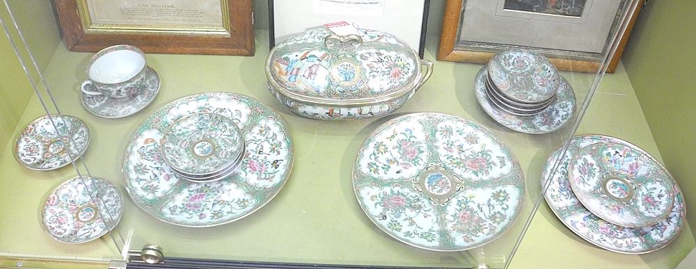Collection of Chinese Rose Mandarin Porcelain Wares (covered dish lacking handle).