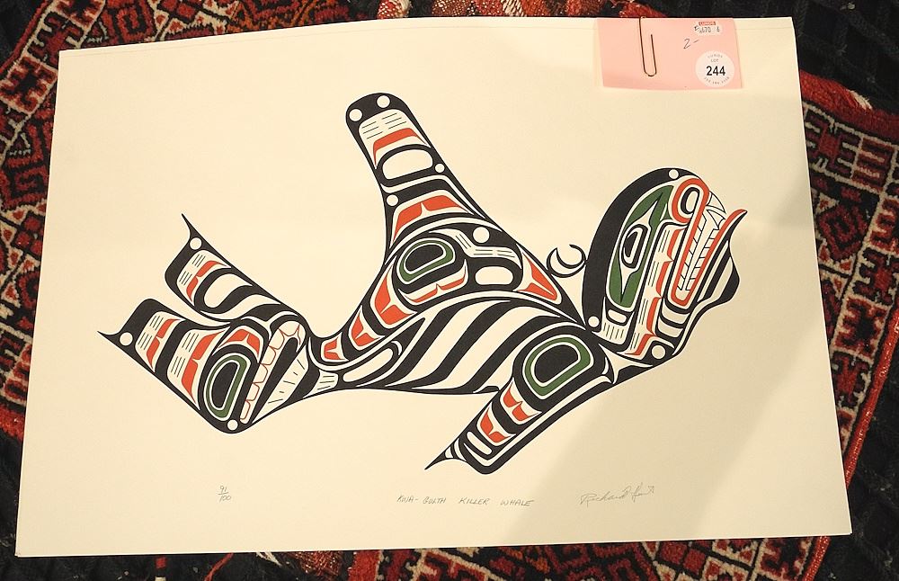 LOT 244 Two Serigraphs signed Richard Hunt, 14 1/4 x 22", "Kwagiulth Killer Whale" #91&92/100, Unframe Estimate: $150 - $200 Sold For: $250 Auction Date: Tuesday, November 25 2025 at 4:00 PM